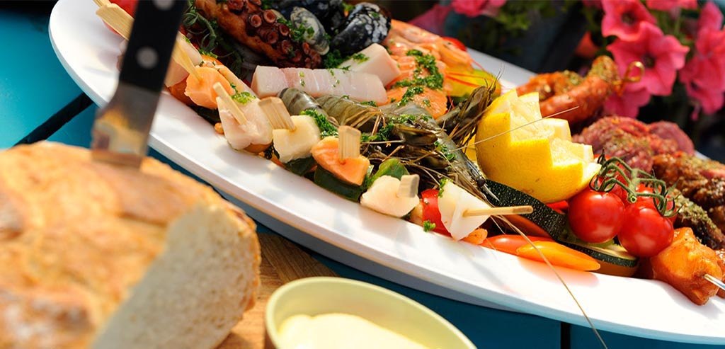 Kun je niet kiezen tussen deze drie vissoorten en ben je met z’n tweetjes of een groter gezelschap? Kom dan genieten van onze Cook it yourself BBQ. Naast een meat en vega optie, hebben we ook een verrukkelijk vis aanbod. De vis BBQ bestaat uit kabeljauw, rode poon, een visspies, gamba’s en mosselen geserveerd met diverse sauzen, een maiskolf, pastasalade en koolsalade. Lekker genieten met de voeten in het zand en een zomerse cocktail!
