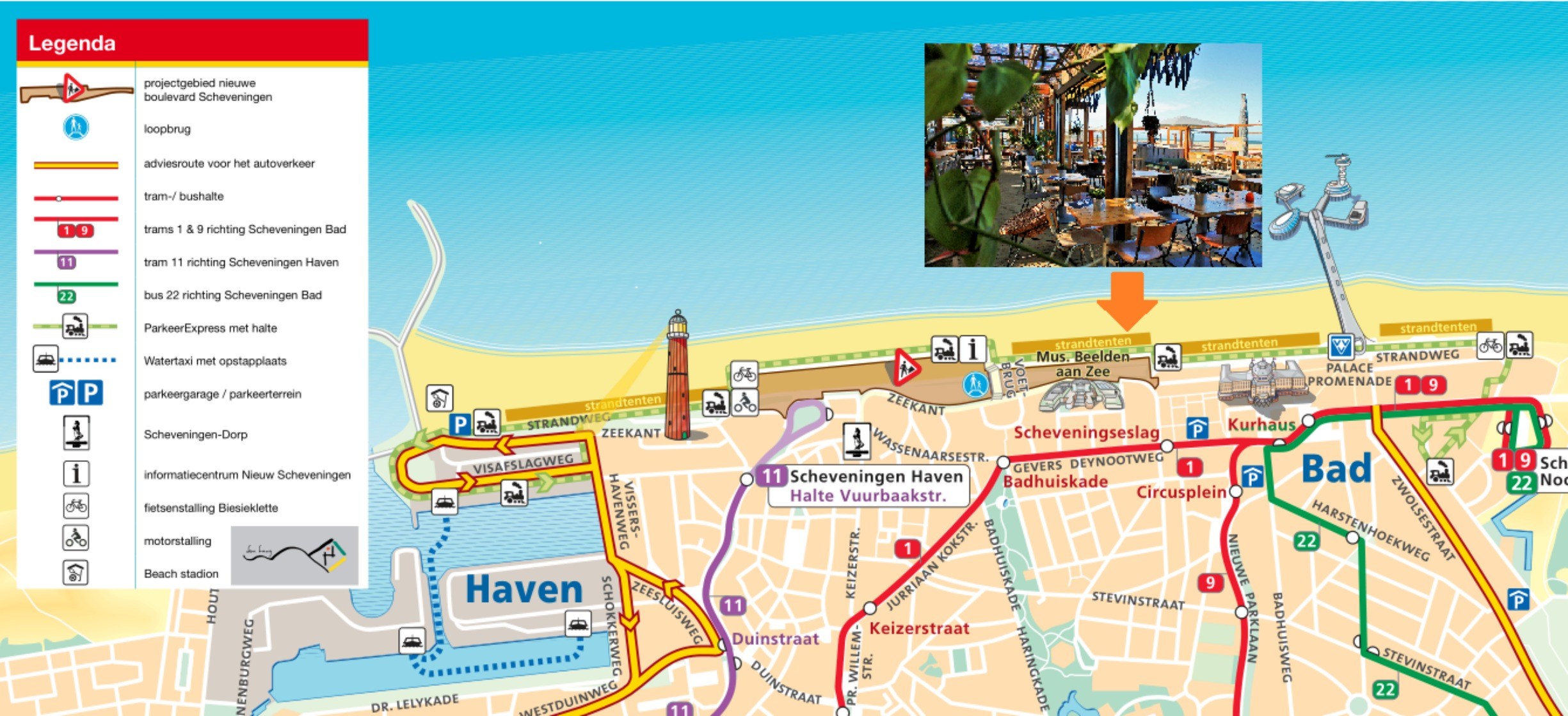 Parkeergarage Kurhaus is de dichtstbijzijnde parkeergarage vanaf strandpaviljoen Solbeach. Ook met OV is strandtent Solbeach goed bereikbaar.