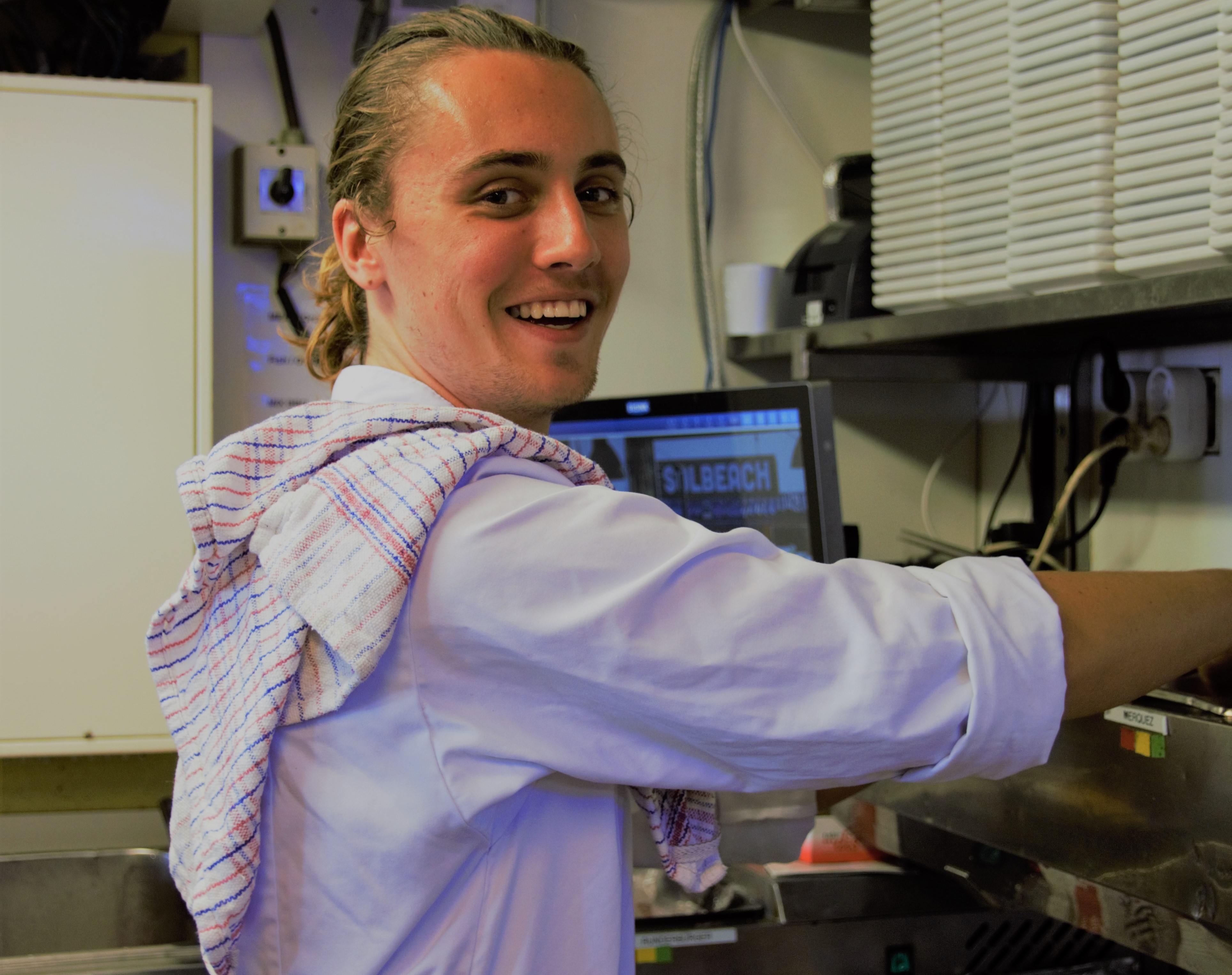 Onze chef-kok Tobi is 8 jaar in dienst van Solbeach. Hij is binnengekomen als leerling en binnen ons bedrijf opgeleid. Nu is hij chef-kok en het gehele jaar in dienst bij Solbeach. Je kan bij ons starten met eenvoudige keukenwerkzaamheden, maar met het doorzettingsvermogen en positieve inzet snel doorgroeien en een belangrijke kracht in de keuken worden. Zonder ervaring leer je dus bij Solbeach het vak terwijl je goed verdiend!